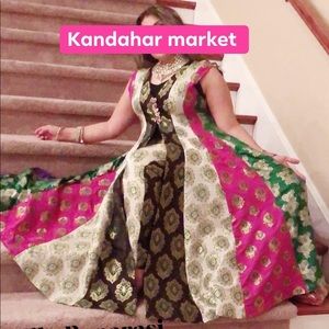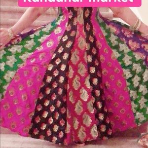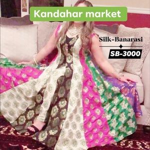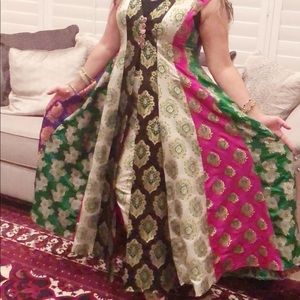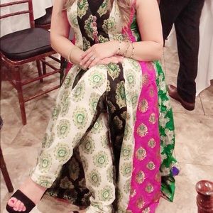 Gorgeous new design Silk Banarasi jacket with pants many different colors of Banarasi in one jacket pant black Banarasi at the back white at the front really beautiful