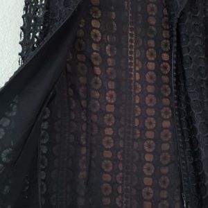 Sexy black lace with see-through lace on the arms. Fun jacket with zipper front. Office to out on the town.