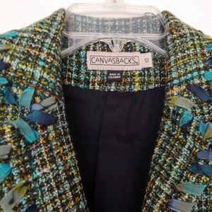 Woven blue, green, with hints of yellow jacket.
