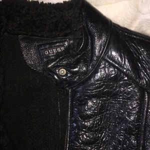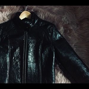 Black polished leather jacket with soft fur lining Italian form fitting cut .
