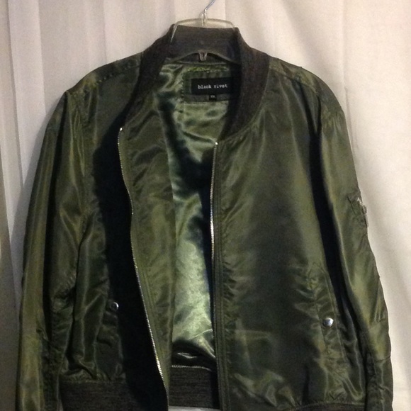 Green jacket 2 front pockets one zip pocket on left arm, worn only once.