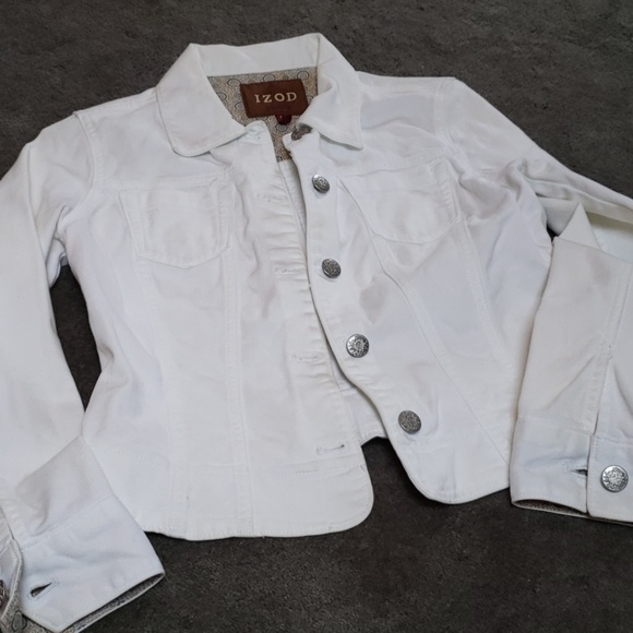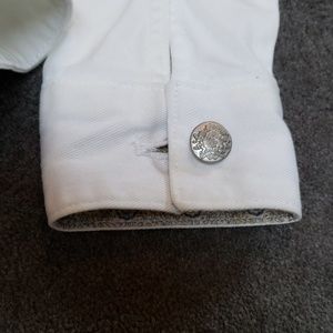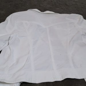 White jean jacket silver buttons..button sleeves two front pockets. Great stitch details