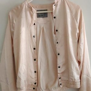 A bomber jacket in cream gold colour in saturn material. Size is 33-34 bust and a small in Vero Moda.