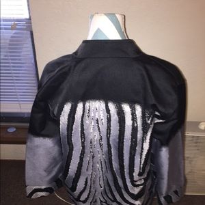 Light weight jacket, unlined silver and black wavy design. Lightly used. Very clean.