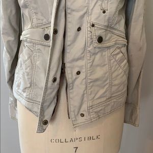 Lightweight, versatile jacket. Lots of pockets. Zip up/zip down zipper closure.
