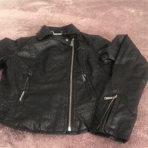 Leather distressed jacket, super cute, arms are too tight for me so I only wore it once.