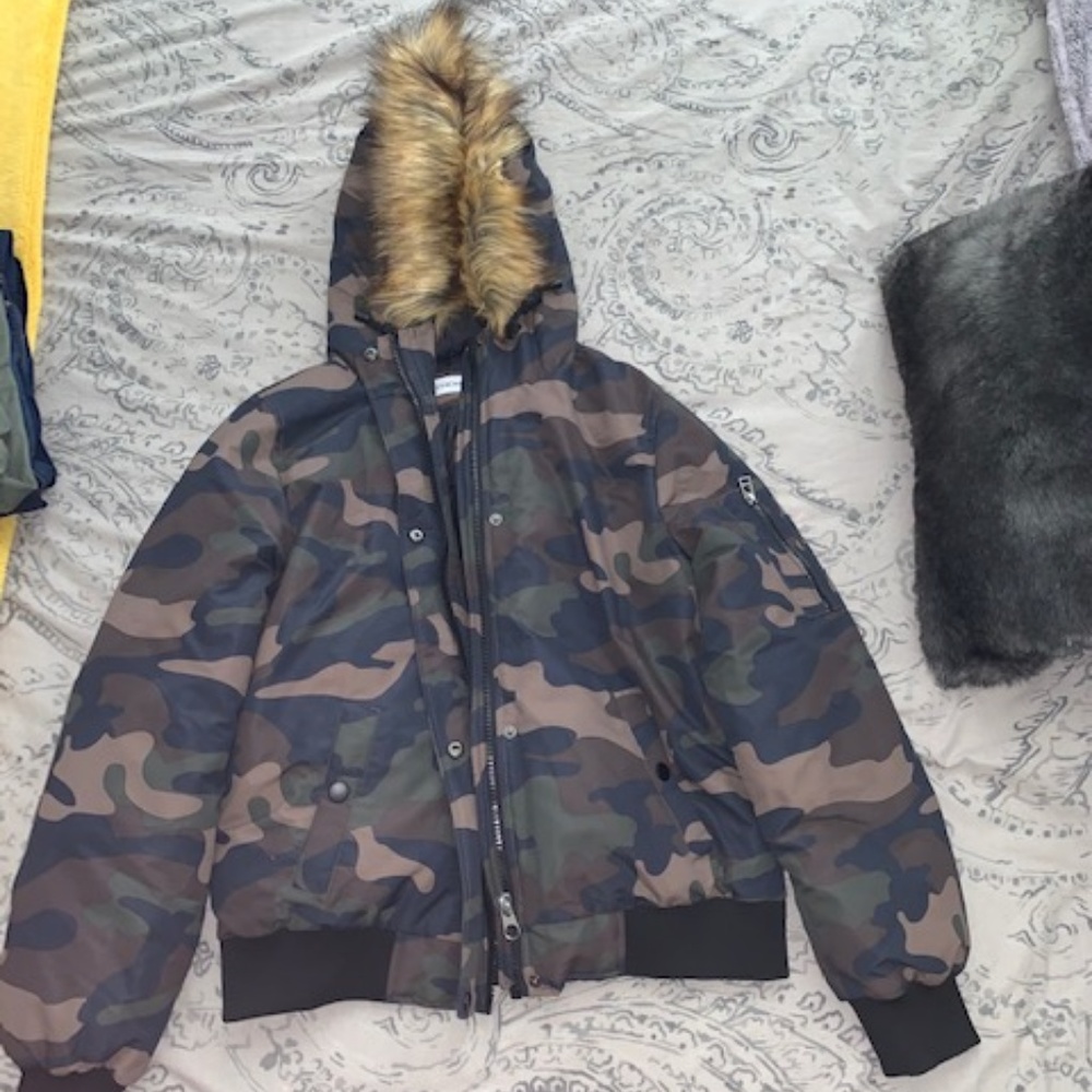 This is a nice, fluffy jacket perfect for winter time and the snow.