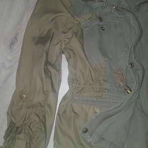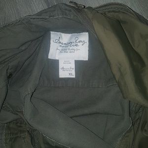 AMERICAN RAG Utility Jacket. Sat in my closet for a few months and had lost some weight so I never did get to wear it. So never worn. Olive green. Stylish and comfortable. Perfect for the Fall time colors ๐๐๐ and complements the warm cozy boots ๐ข.