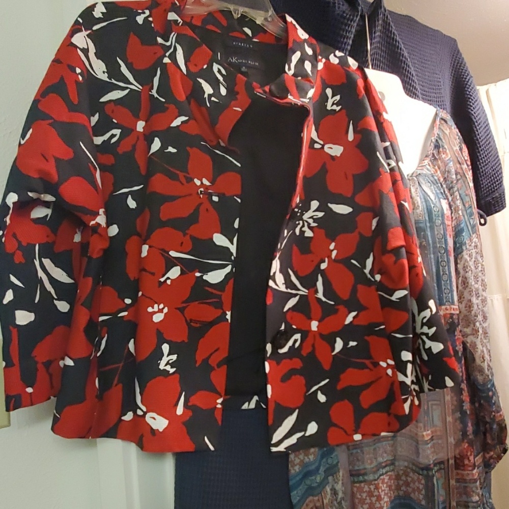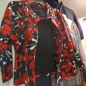 Black with red flowers zip pockets 3 front buttons