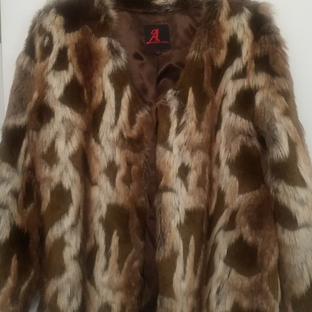 Faux fur jacket with long sleeves, V-neck and hidden toggle closing. Barely worn