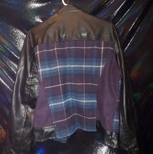 Plaid and leather button and zip jacket. bought but never used. no rips tears or missing buttons or Embellishments
