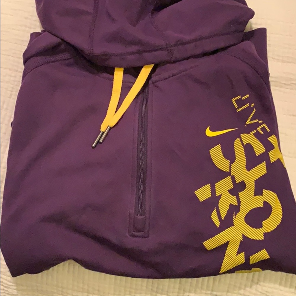Purple Nike half zip pill over. Livestrong and Dri fit