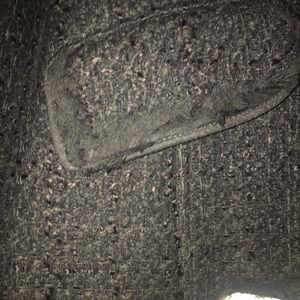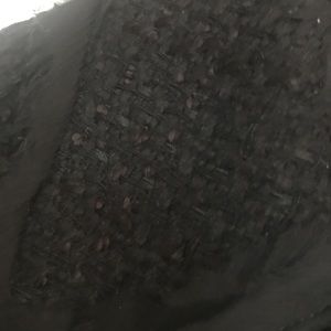 Black tweed jacket with sheer trim. Great with dresses, jeans and skirts.