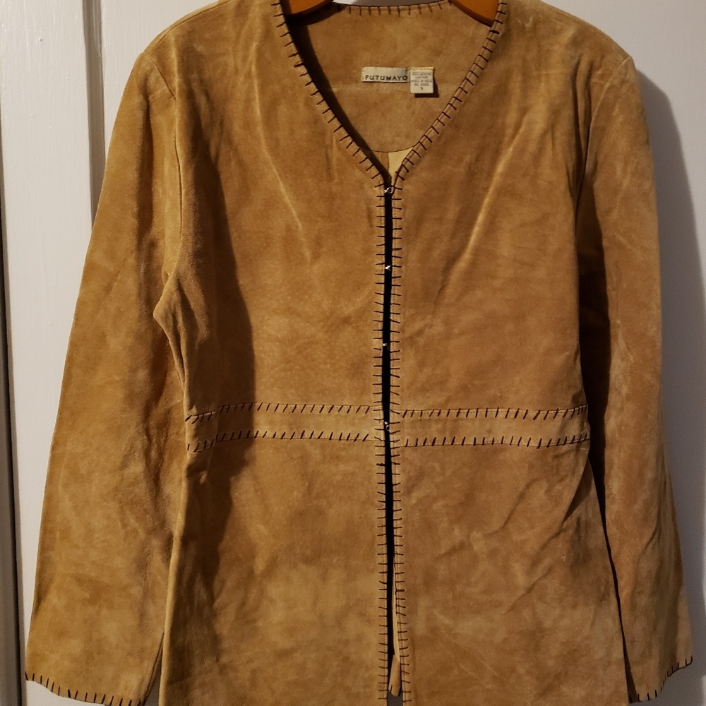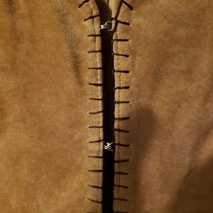 Brand new but removed tags.Never worn.Light brown suede with stitching. Hook and eye closure.