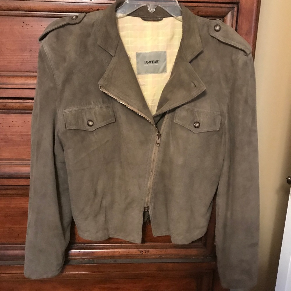Army Green Faux Suede Crop Jacket with a slanted zipper. Very soft!