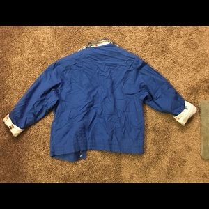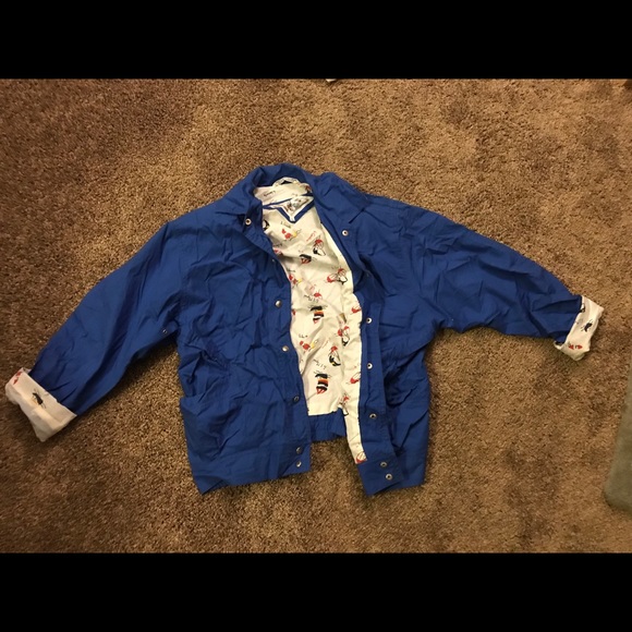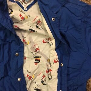 Vibrant blue jacket with details of sailboats lining the inside
