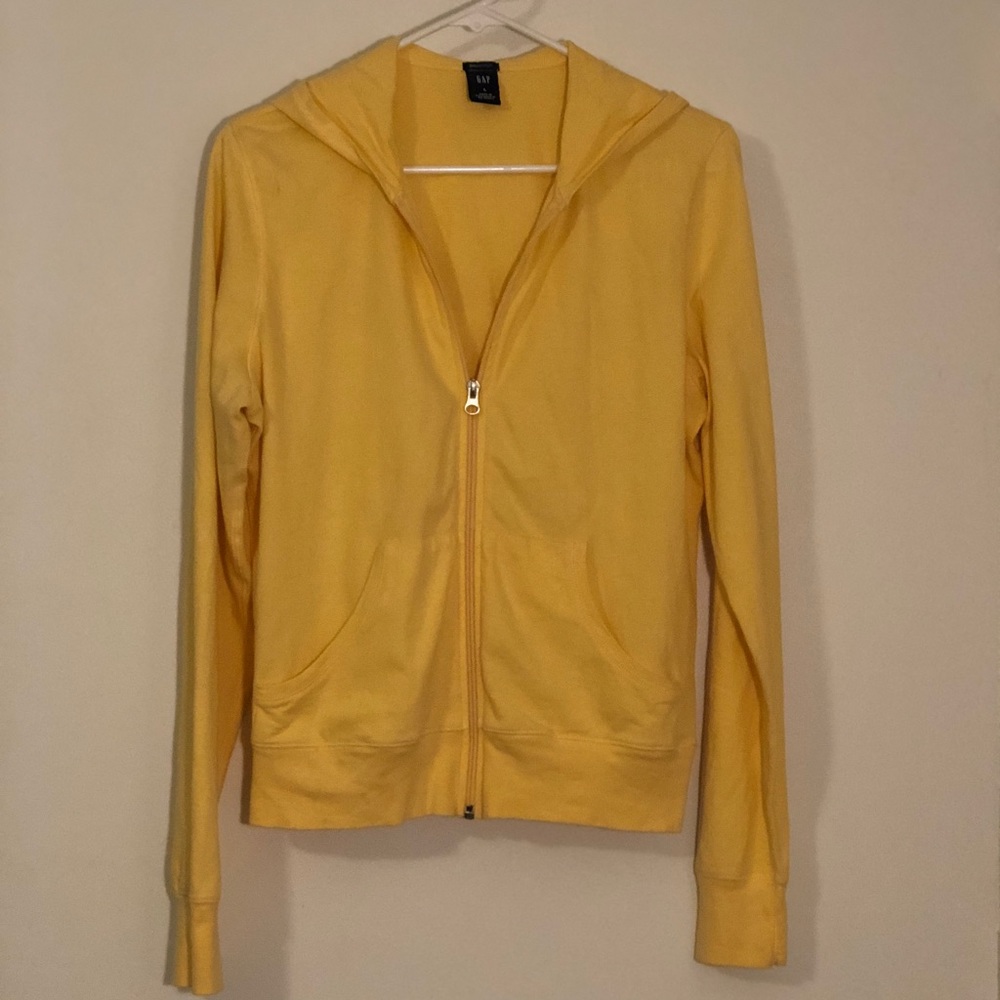 Yellow Gap jacket with a silver zipper and a hoodie for bad hair days never worn 95% cotton 5% spandex