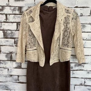 This jacket is fun, flirty, and sophisticated. It pairs well with a dress or jeans. It’s definitely a statement peace. Lace motorcycle crop jacket goes with any session.