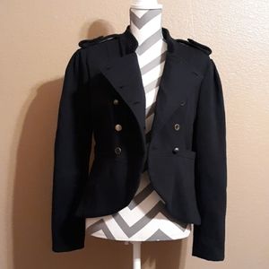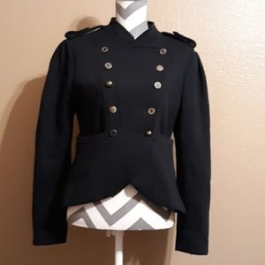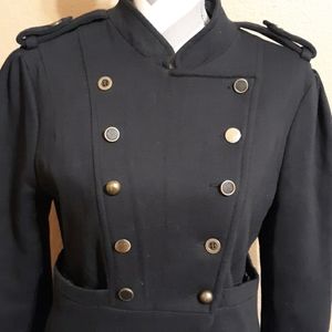 Military style double-breasted, lining inside and of 60% cotton 40% polyester/100% polyester and machine washable
