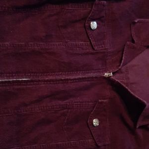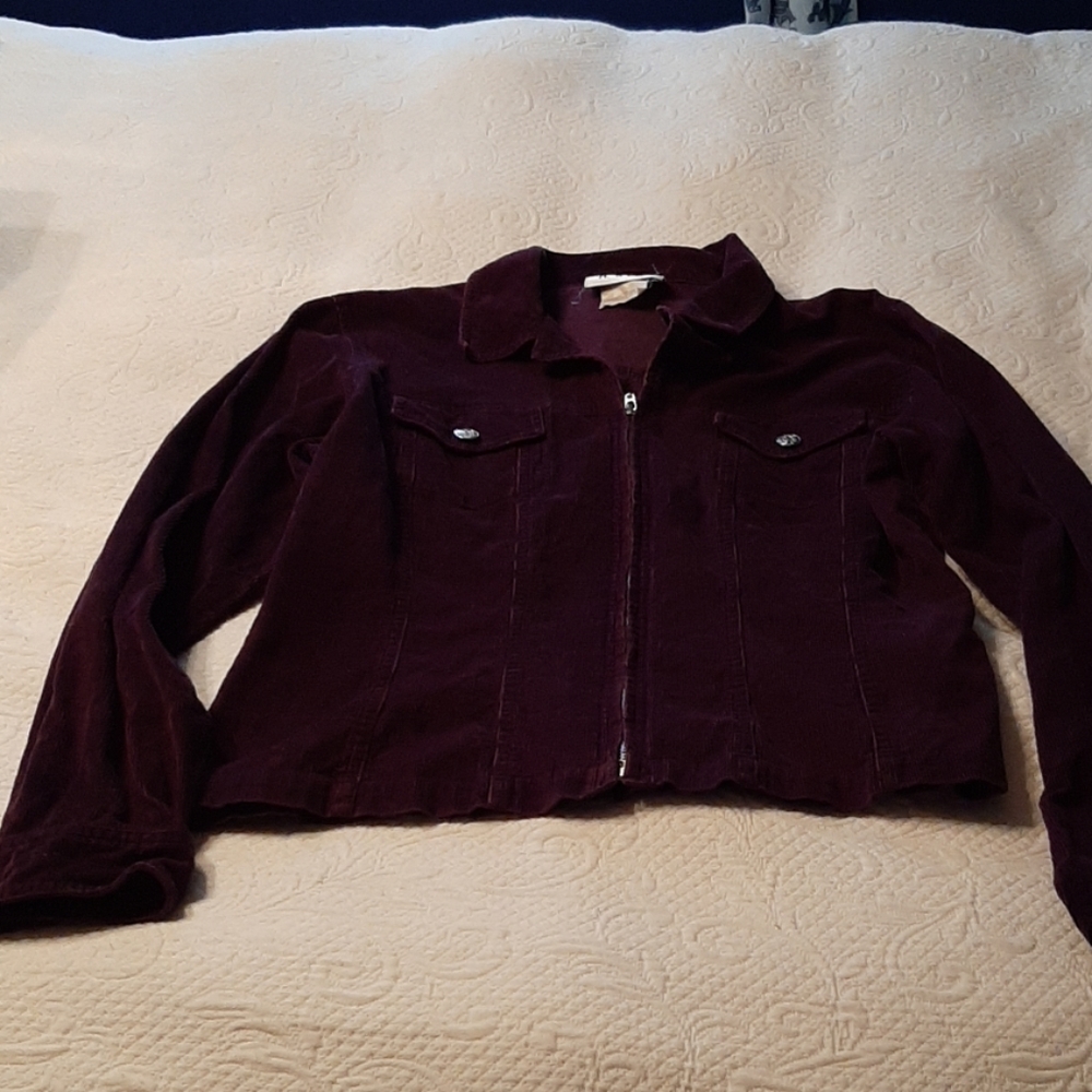 Thin corduroy jacket. Color is plum purple. A. BRYER size medium. Zips up. Buttons on sleeves and pockets.