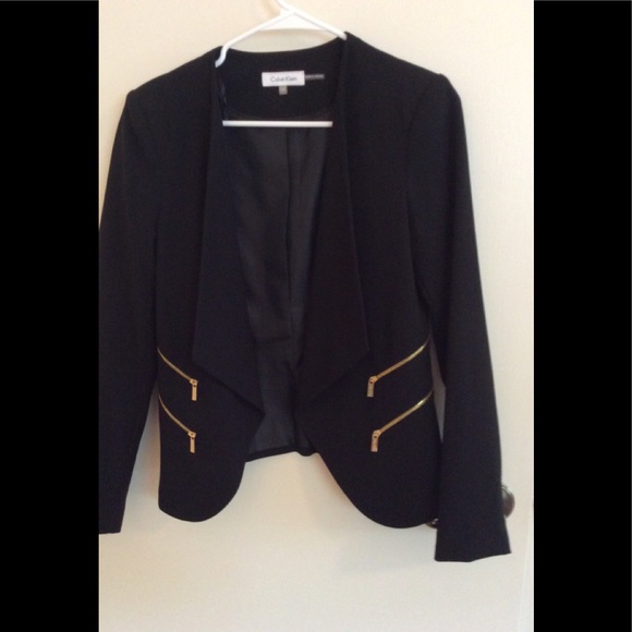 Calvin Klein Blazer. Black with gold zippers. Size 4