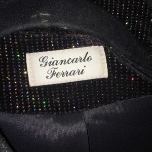 Multicolored black jacket with zipper, 1’x23-1/2”. Multi colored Sparkle threads all through. 97% polyester, 3% spender.
