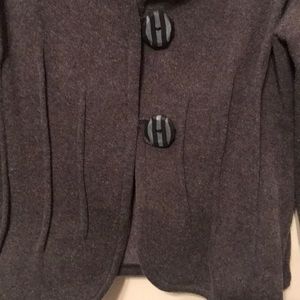 Beautiful handmade soft cotton knit jacket. Cool detail, handmade buttons. Charcoal grey. Fitted medium.