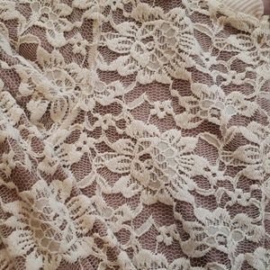 Tan, lace long- sleeves, zippered.