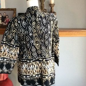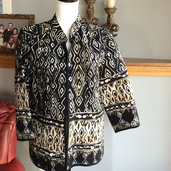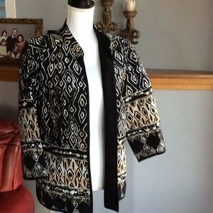 Uniquely patterned short jacket. 3/4 sleeves. Unlined.