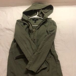 Army green jacket with large pockets and hood