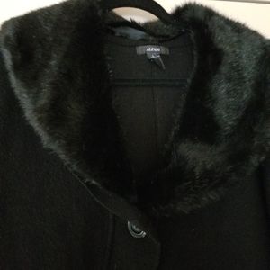 Jacket with fur look collar that detaches
