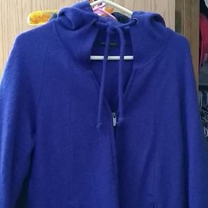 Blue winter jacket with hoodie. Not lined but is 70% wool and 30 % acrylic