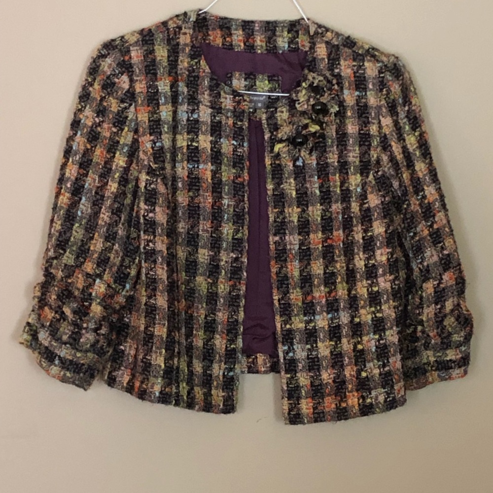 Great plaid from Anthropologie. Black, taupe and coral. Good condition