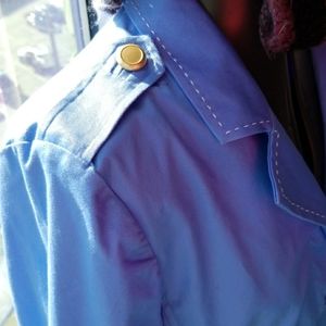 Light blue New jacket with white stitching with gold button and nice pockets.