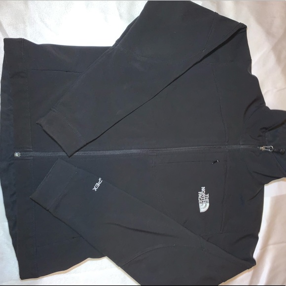 North Face zip up jacket. Has pockets, and third pocket on chest. Waterproof, hardly worn.