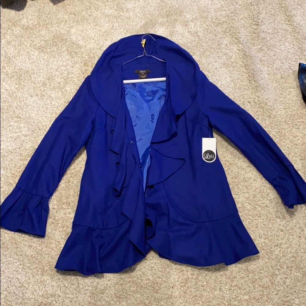 Blue frilly jacket w/ sliver clasps