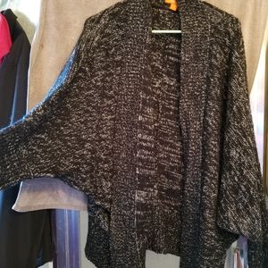 Black and white knitted throw jacket.