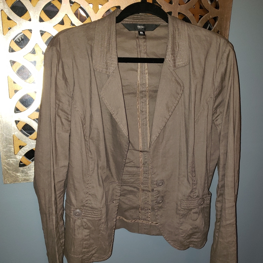 Olive green, long sleeve, linen, dress jacket.