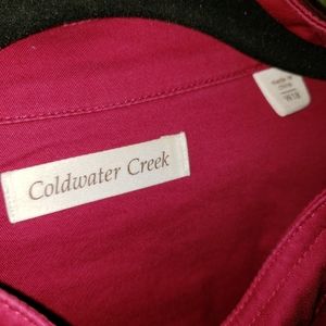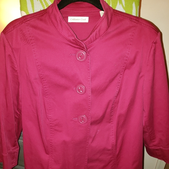 Maroon jacket 3/4 sleeve, similar weight to khaki pants.