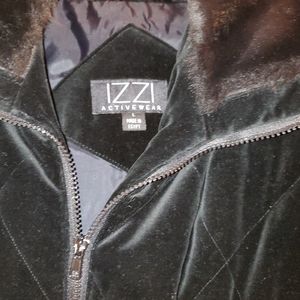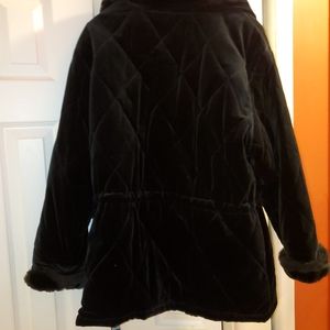 Velvet like coat with drawings to tighten waist.