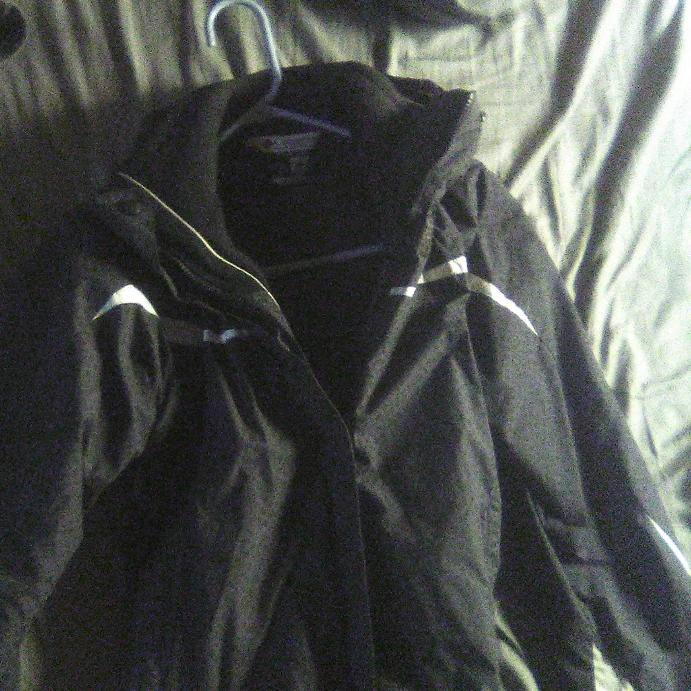 Black with white winter jacket with zippers pockets and inside pockets with a black Columbia Interchangeable %100 Polyester sweater without zippers on the pockets. Removable. Able to wear each separate.