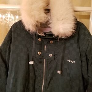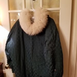 Insulated winter jacket with fox fur trimmed hood. Excellent condition.