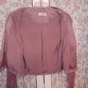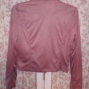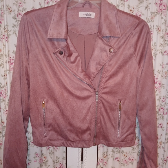 Fantastically soft beautiful color great front side zipper. This Jacket is beautiful with 2 side zipper pockets, zipper on the bottom of each sleeve and snaps on sides of calor. Just gorgeous and never worn.