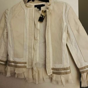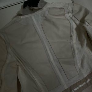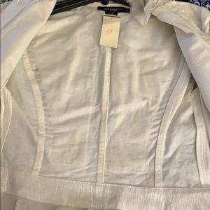 Linen shirt Jacket...... Good condition a little spot on the back left arm .....very comfortable easy to wear with a pair jeans or as a jacket with bright tee shirt size small.