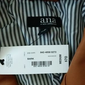 Beautiful jacket. Brand New, with tags. Zipper in front. Pockets. The color says "bark", but I chose tan.