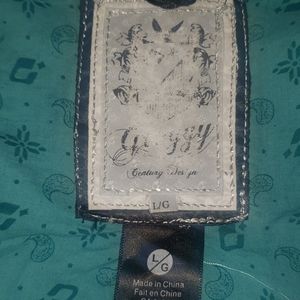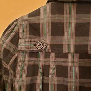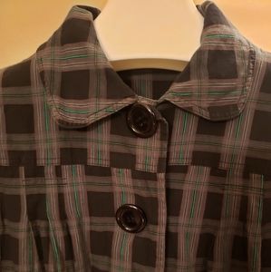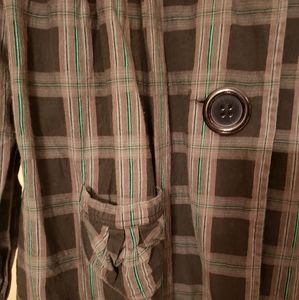 Cute crop jacket, fun pattern and decorative buttons. Lightweight, machine wash, in good condition, some fading on the inside label, see photo.