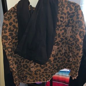 Leopard print crop jacket , button hoodie so you can wear with hood or without