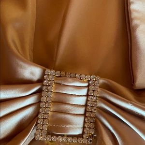 Feels like satin shined in color gold shoulder to shoulder 17.5 22’ long