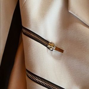 Nine West size 6 grey in color with black inlay in sleeves with two zipper on each pocket side fully lined shoulder to shoulder 16’ 24’ long