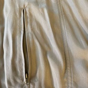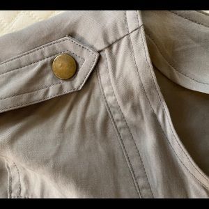 Market&Spruce Gray Jacket, snap buttons, zipper pockets, cord ties on bottom to tighten waist/hip area. Great addition for spring! Light weight, 100% Lyocell, Machine Washable.